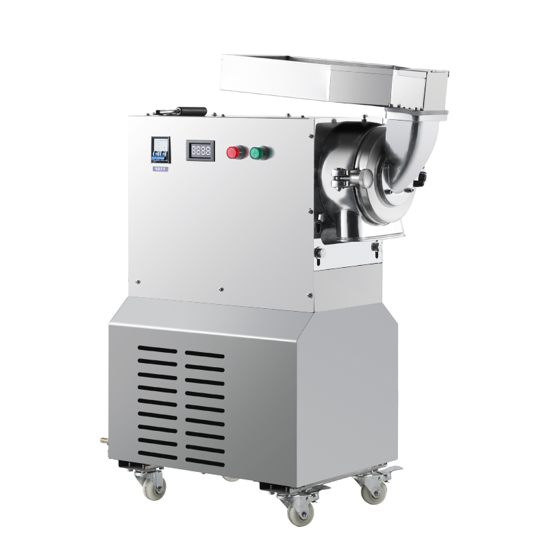 本机采用分级双腔的粉碎原理,内外两道粉碎仓的结构,粗碎细粉二合一,对硬度较高或带有纤维的较难粉碎的中药材物料粉碎效果良好,均不会有纤维及毛絮状物料残留;粉碎细度高30-200目,无需多次粉碎或过网筛选,一次成品;适应中药材物料范围广,如三七,麻卡,铁皮枫斗,黄芪等干性块状、片状、根径及叶子类的中药材(直径小于4cm)均可直接投料粉碎;损耗率极低于5%,粉碎仓残留物少,粉碎物料提取率高;整机采用不锈钢材质,符合GMP药品生产规范,用材精良,使用寿命长;